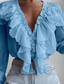 Women's Casual Shirt Chiffon Tops Ruffle Solid Color Floral Plain Elegant Stylish Casual Long Sleeve V Neck Regular Tops Daily Outdoor Holiday Blue Black White Pink Summer Spring