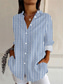 Women's Shirt Cotton Linen Shirt Blouse Buttons Print Graphic Geometric Striped Daily Hawaiian Business Long Sleeve V Neck Regular Tops Daily Work Holiday Blue Yellow Red Purple Green Summer Spring