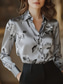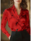 Women's Shirt Long Sleeve Button Down Blouse Stylish Modern Buttons Print Regular Tops Shirt Collar Work Daily Maroon Spring Fall