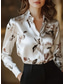 Women's Work Shirt Floral Graphic Elegant Stylish Basic Long Sleeve Shirt Collar Regular Tops Daily Work Party Evening Wear Blue Yellow Light Green Green Spring, Fall, Winter, Summer