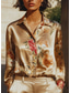 Women's Shirt Buttons Print Floral Graphic Vintage Tropical Daily Long Sleeve Shirt Collar Regular Tops Daily Work Formal Wear White Orange Brown Spring Fall