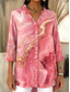 Women's Shirt Linen Like Breathable Lightweight Button Down Tunic Shirt Collar Long Sleeve Floral Print 3/4 Sleeve Spread Collar Pink Magenta White -Down Casual Elegant Tropical Sizes Available