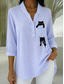 Women's Blouse Linen Like Breathable Lightweight Tunic V Neck Long Sleeve Boho Casual Summer Tops Graphic Animal Cat Vintage Tropical Regular Tops Daily Wear Print White Yellow Beige