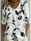 Women's Shirt Linen Like Breathable Lightweight Button Down Tunic Shirt Collar Long Sleeve Floral Graphic Daily Stylish Retro Vintage 3/4 Length Sleeve Daily Holiday Going out s Black Spring