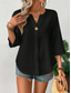 Women's Summer Shirt Casual Shirt Blouse Buttons Pullover Solid Color Vacation Stylish Casual 3/4 Length Sleeve V Neck Regular Tops Daily Beach Holiday Black White Orange Summer Spring