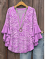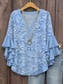 Women's Blouse V Neck Layered Ruffle Sleeve Tops Floral Graphic Paisley Daily Stylish Casual 3/4 Length Sleeve Regular Tops Daily Holiday Vacation Wear Print Purple Green Beige Light Blue Summer