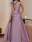 Mermaid Trumpet Ankle Length Prom Dresses Evening Gown Ball Gown Formal Dress Elegant Sleeveless One Shoulder Formal Wedding Guest Satin with Bow(s) Slit
