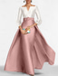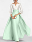 A-Line Floor Length Evening Gown Ball Gown Formal Dress Elegant Vintage Long Sleeve Shirt Collar Formal Satin Nylon with Slit