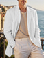 Men's Blazer Business Cocktail Party Wedding Party Fashion Casual Spring Fall 100% Cotton Plain Pocket Buttons Comfortable Single Breasted Blazer White Blue Beige