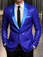 Men's Blazer Formal Evening Casual Daily Sweet All Seasons 65%Cotton 35%Polyester Solid / Plain Color Sequins Casual Wedding Single Breasted Blazer Silver Black Red Blue