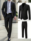 Men's Blazer Set Business Cocktail Party Wedding Party 2 Piece Fashion Casual Spring Fall Polyester Plain Pocket Buttons Comfortable Single Breasted Blazer Black