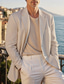 Men's Linen Blazer Sport Coat Notch Collar Fashion Casual Solid Colored Linen Blazer Sky Blue khaki Beige Standard Fit Single Breasted One-button
