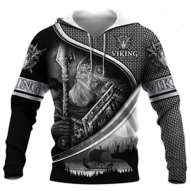 Men's Viking Warrior Graphic Prints Viking Hoodie Hoodies Sweatshirt Daily Classic Casual Long Sleeve Hooded Holiday Going out Streetwear Black Yellow Red Blue Print Spring & Fall Designer S M L XL