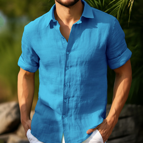 Men's Shirt Linen Shirt Casual Shirt Cotton Shirt Plain Vacation Street White Sky Blue Khaki Light Grey Short Sleeve Turndown Summer Clothing Apparel Button-Down