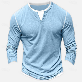 Men's Shirt V Neck Tee Long Sleeve Shirt Bamboo T-shirt Long Sleeve V Neck Spring & Fall Solid Color Patchwork Daily Casual Street Style Fake two piece Outdoor Street Causal Light Blue Light Green