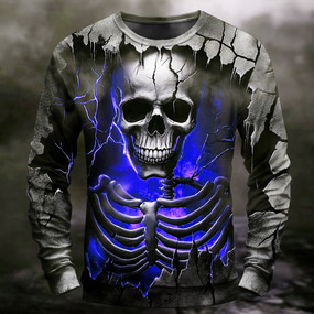Skull Men's 3D Skeleton T Shirt Long Sleeve T shirt 3D Print Crew Neck Shirt Fashion Exaggerated Street Casual Daily Summer Spring Fall Clothing Apparel