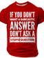 Men's Funny Graphic T-Shirt - Sarcastic Quote 'If You Don't Want a Sarcastic Answer Don't Ask a Stupid Question' Short Sleeve Tee