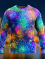 New Year Men's Fireworks T Shirt Long Sleeve T shirt 3D Print Crew Neck Shirt Exaggerated Designer Artistic Club Party Street Blue Black Purple Fall Winter Clothing Apparel S M L XL XXL XXXL