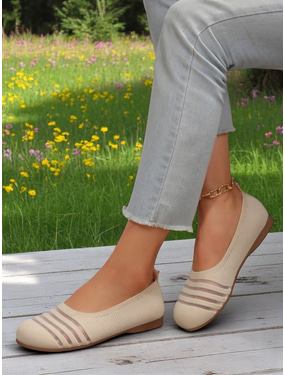 Women's Flyknit Casual Barefoot Shoes - Breathable Mesh Upper Wide Toe Flats Trendy Stripes, Comfortable for Walking and Casual Activities