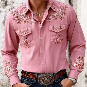 Men's 3D Print Floral Print Flowers Western Shirt Button Up Shirt Cowboy Shirt Long Sleeve Vintage Retro Outdoor Holiday Spring Fall Turndown Collared Shirts Front Two Pockets Pink Beige