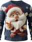 Ugly Christmas Sweater Men's Cartoon Santa Claus Print Pullover Sweater Jumper Knitwear Crewneck Casual Vacation Daily Knitting Keep Warm Long Sleeve Spring Fall Winter Lake blue Red Blue