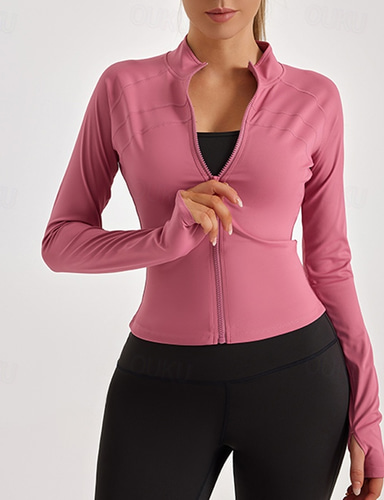 Women's Solid Colored Running T-Shirt Summer Zipper Long Sleeve Casual Athleisure Quick Dry Soft Breathable Gym Workout Running Walking Jogging Dark Grey Dark Pink Black Sportswear Activewear