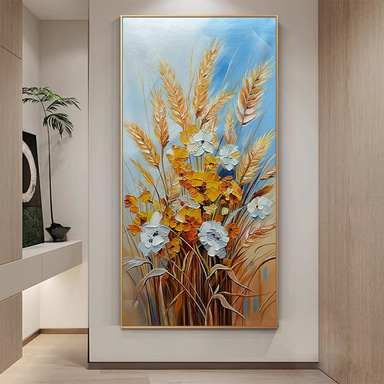 Mintura Handmade Wheat Ears And Flowers Oil Paintings On Canvas Wall Art Decoration Modern Abstract Pictures For Home Decor Rolled Frameless Unstretched Painting