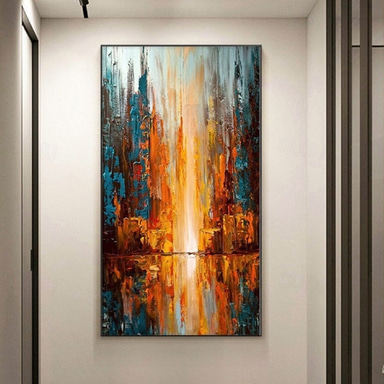 Mintura Handmade City Landscape Oil Painting On Canvas Wall Art Decoration Modern Abstract Picture For Home Decor Rolled Frameless Unstretched Painting