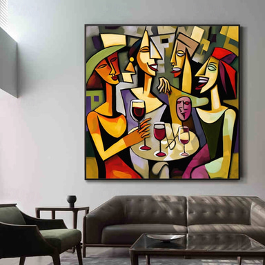 Picasso style Abstract Girl Happy Family drinking Handpainted Oil Painting on Canvas Modern Nordic Figure Handmade Wall Art Picture Living Room Decoration No Frame