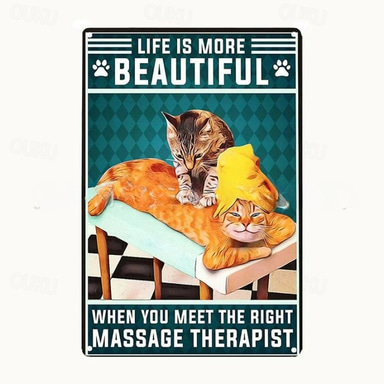 1pc Retro Metal Tin Sign Cute Cat Tin Sign Vintage Kitchen Signs Wall Decor, Painting Wall Hanging for Home Decor Wall Art Metal Tin Sign 20x30cm/8''x12''