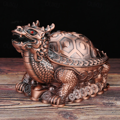 Vintage Ashtray with Lid, Dragon Turtle Windproof Ashtray for Home Living Room, Anti-Smoke Decorative Covered Ashtray Ornament