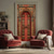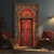 Ancient Arabic Red Wooden Door Ornate Moorish Archway Intricate Floral Carving 3D Realistic Fabric Door Banner Cover for Home Interior Room Decor Entryway Party Background