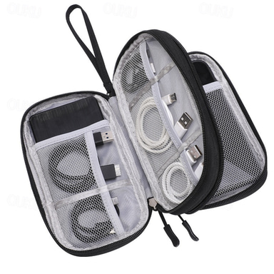 Waterproof Travel Cable Organizer Bag, Double-Layer Electronics Accessories Storage Case, Multi-Functional Digital Pouch for Cables, Chargers, Passport