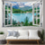 Nature Landscape Tapestry Fake Window View Mountain Lake Wall Hanging 3D Visual Effect Backdrop for Living Room Bedroom Home Decor