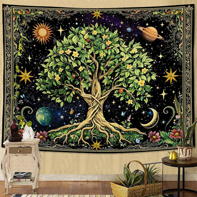 Mystical Tree of Life Celestial Ancestral Tree Glowing Golden Roots Galaxy Starry Night Blue Sparkling Stardust Wall Tapestry Bedroom Living Room Dorm Decor Meditation Backdrop