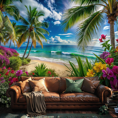 Tropical Beach Window View Tapestry Wall Hanging 3D Nature Landscape Palm Trees Ocean Island Summer Home Decor Large Fabric Backdrop