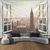 3D City Night Skyline Window View Wall Tapestry New York Skyscrapers Moon and Stars Wall Hanging Modern Urban Landscape Art Bedroom Living Room Decor Backdrop