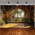 Magic Library Fantasy Reading Room Round Window View Lush Green Tree Bookshelf Vintage Books Sofa Wall Tapestry Wall Hanging Backdrop for Bedroom Study Room Home Office Library Decor Wall Art