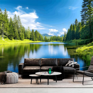 3D Scenic Lake Wooden Pier Garage Door Banner Billboard Large Scale Nature Forest Landscape Exterior Mural Cover Weatherproof Outdoor Decoration Banner