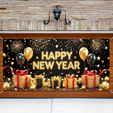 New Year Tapestry Garage Door Cover Large Hanging Backdrop Happy New Year 2026 Fireworks Cute 3D Party Outdoor Holiday Shooting Backgrounds Yard Home Decor