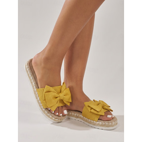 Women's Cream Linen Bow Slide Sandals - Elegant Espadrille Flatforms for Cruise Vacations, Tropical Summer Holidays & Luxury Resort Wear