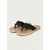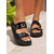 Women's Black Buckle Sandals - Trendy Double Strap Design, Comfortable Footbed for Daily Wear and Relaxed Casual Style