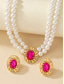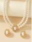 Women's Vintage Pearl Choker Necklace and Earrings Set – Elegant Double Strand Beaded Jewelry with Gold Oval Accents for Ladies, Ideal for Weddings, Parties and Formal Occasions