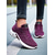 Women's Red Flyknit Slip-On Sneakers – Breathable Lightweight Walking Shoes with Colorful Elastic Straps for Travel, Weekend Outings and Casual Daily Wear