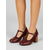 Women's Burgundy Faux Leather Pointed Toe Heels , Brogue Design, Kitten Heels, 1950s Elegant Style, Ideal for Office Wear and Evening Events