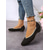 Women's Black Suede Pointed Toe Low Heel Shoes with Flower Appliqué – Retro Chic Dress Pumps for Weddings, Work, and Holiday Parties