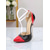 Women's Red and Black Patent Leather Pointed Toe Stiletto Heels with Clear Ankle Strap - Sexy Nightlife and Christmas Party Shoes