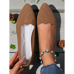 Women's White Flyknit Pointed Toe Flats – Scalloped Edge Ballerina Shoes for Spring Picnics, Garden Parties & Commuting