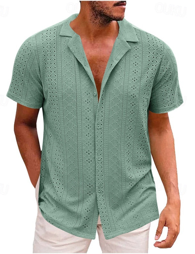 Men's Shirt Summer Shirt Button Up Shirt Casual Shirt Blue Green Short Sleeve Plain Collar Daily Vacation Clothing Apparel Fashion Casual Comfortable