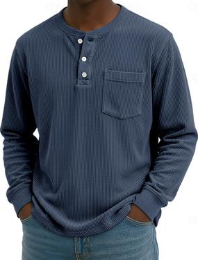 Men's T shirt Tee Waffle Henley Shirt Henley Shirt Tee Top Long Sleeve Shirt Plain Henley Street Vacation Long Sleeve Clothing Apparel Polyester Fashion Designer Basic